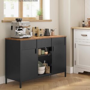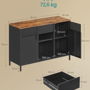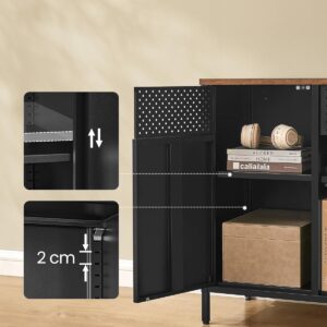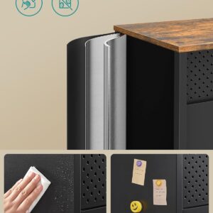 SONGMICS Dulap metalic cu 2 usi si polite reglabile, otel si PAL, stil industrial, 40x110x76 cm, maro rustic