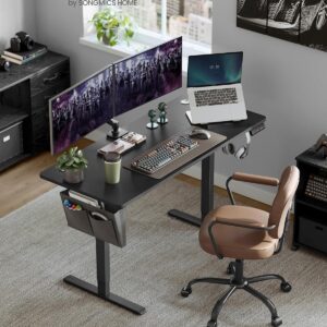 SONGMICS Birou reglabil electric, inaltime ajustabila 72-120 cm, cadru otel, blat PAL 140×60 cm, functie memorie 4 pozitii, negru