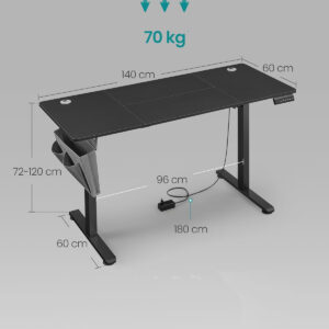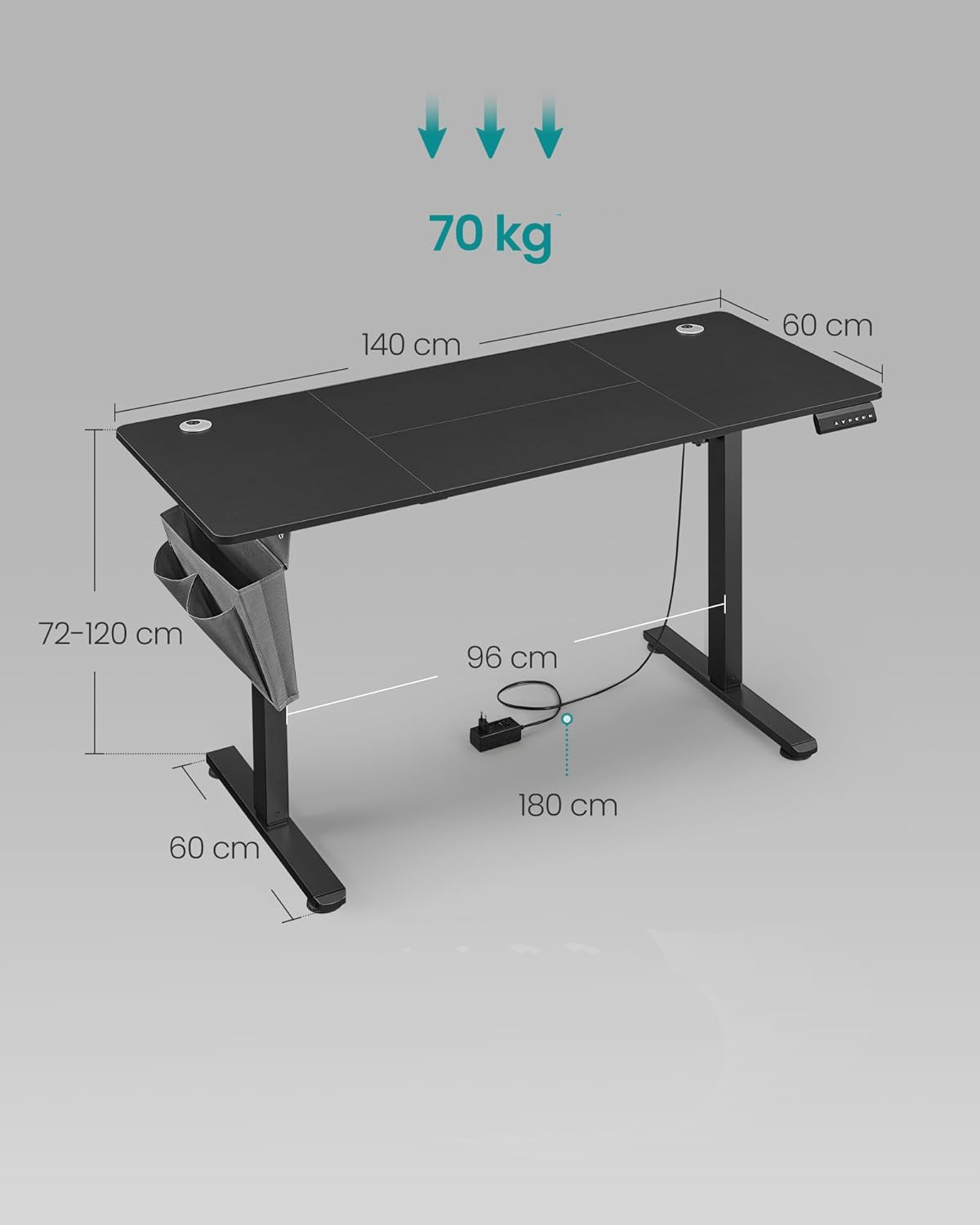 SONGMICS Birou reglabil electric, inaltime ajustabila 72-120 cm, cadru otel, blat PAL 140x60 cm, functie memorie 4 pozitii, negru SONGMICS Birou reglabil electric, inaltime ajustabila 72-120 cm, cadru otel, blat PAL 140x60 cm, functie memorie 4 pozitii, negru