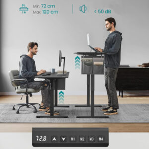 Lucreaza confortabil si sanatos cu acest birou reglabil electric, ideal pentru home office sau studiu. Ajusteaza rapid inaltimea si salveaza pozitiile preferate pentru o experienta ergonomica si eficienta in fiecare zi.