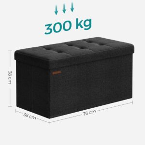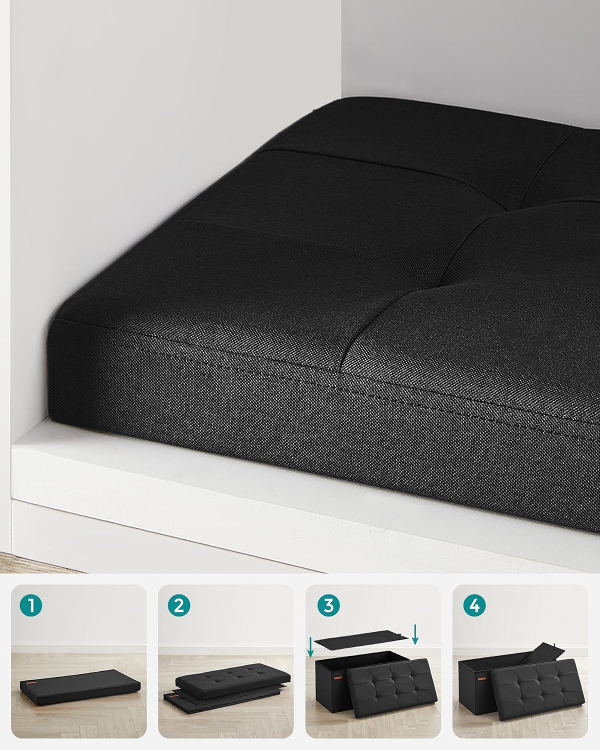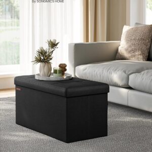 Bancheta de depozitare SONGMICS este o solutie practica si versatila pentru organizarea spatiului. Ofera un volum generos pentru depozitare si poate fi folosita ca sezut, suport pentru picioare sau masuta ocazionala. Designul pliabil permite depozitarea usoara atunci cand nu este utilizata.
