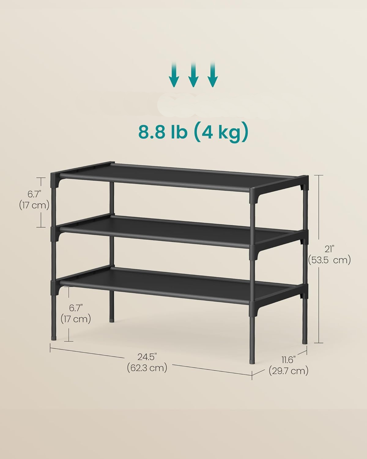 - 3 niveluri de depozitare pentru organizarea eficienta a pantofilor