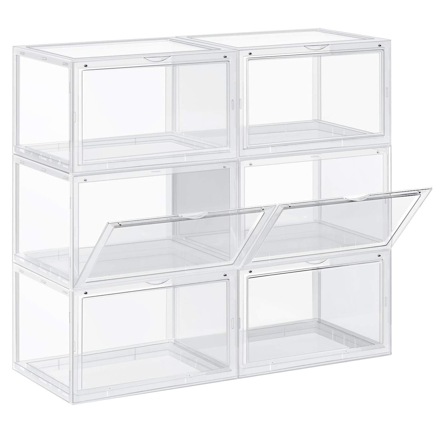 Pastreaza incaltamintea organizata si vizibila cu acest set de 6 cutii transparente. Designul cu usa frontala si sistemul stivuibil economisesc spatiu si ofera acces rapid la fiecare pereche.