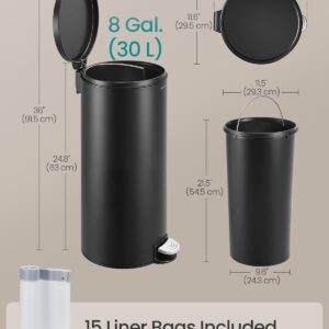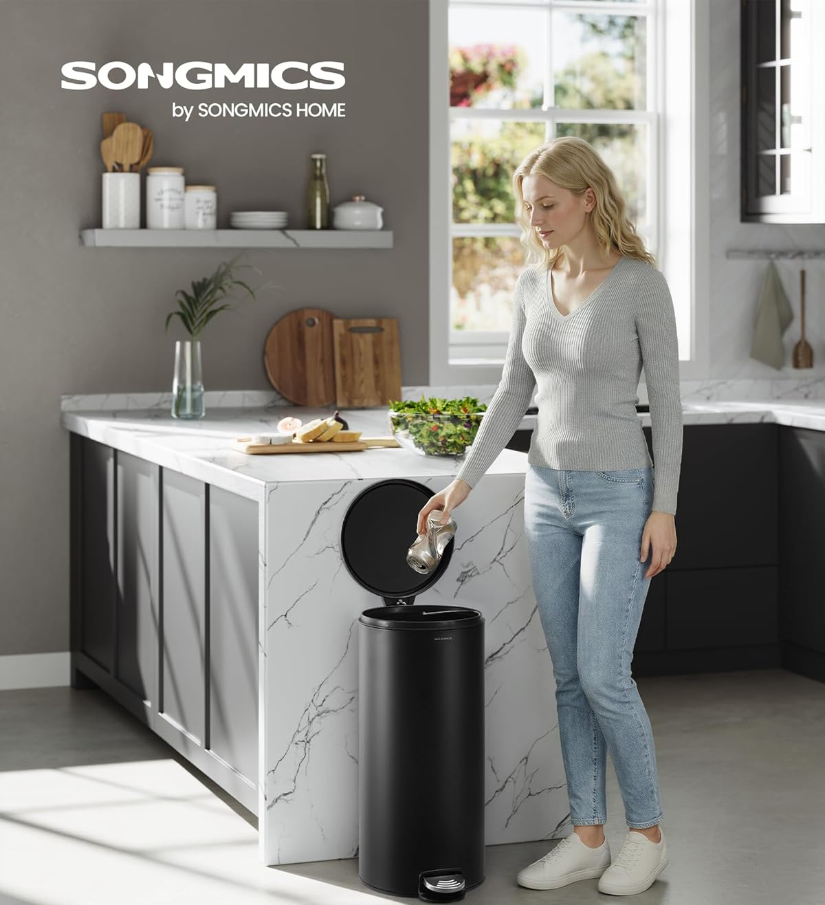 Cosul de gunoi SONGMICS combina designul modern cu functionalitatea practica. Prevazut cu pedala pentru deschidere hands-free si capac soft-close, este ideal pentru utilizare zilnica in bucatarie sau alte incaperi. Galeata interioara detasabila asigura o curatare usoara si igienica.