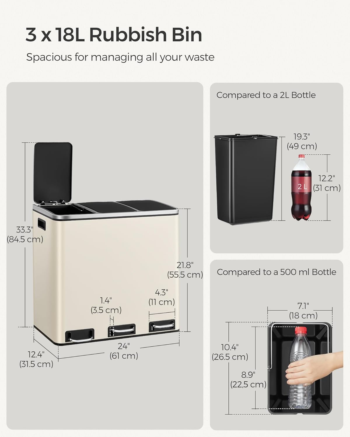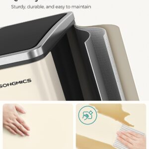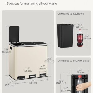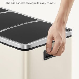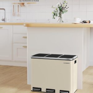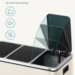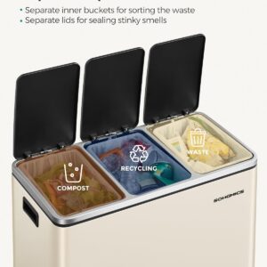 SONGMICS Cos de gunoi colectare selectiva cu 3 compartimente 3 x 18L, capace soft close, pedale, otel, 61x32x56 cm, bej