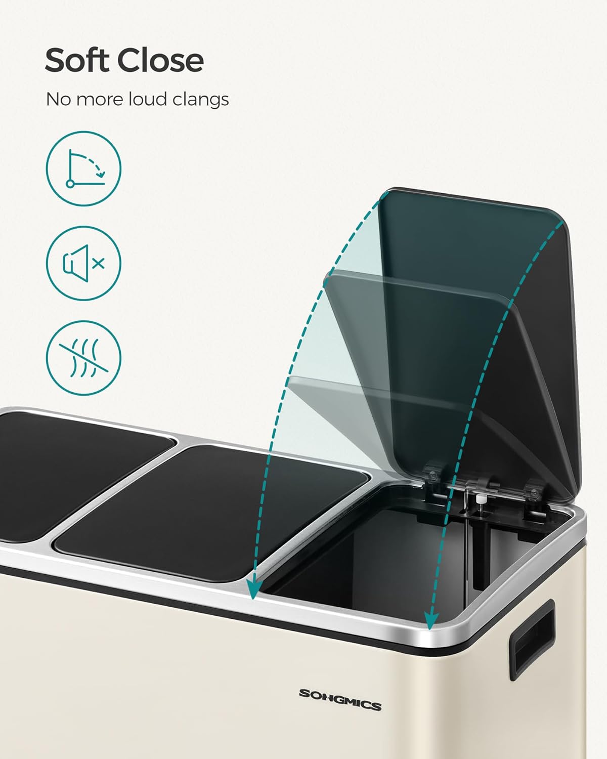 SONGMICS Cos de gunoi colectare selectiva cu 3 compartimente 3 x 18L, capace soft close, pedale, otel, 61x32x56 cm, bej SONGMICS Cos de gunoi colectare selectiva cu 3 compartimente 3 x 18L, capace soft close, pedale, otel, 61x32x56 cm, bej