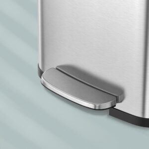 Cos de gunoi de bucatarie cu capacitate mare, potrivit pentru familii numeroase sau utilizare intensa. Mecanismul cu pedala permite deschiderea fara folosirea mainilor, iar capacul cu inchidere lenta asigura utilizare silentioasa si confortabila.