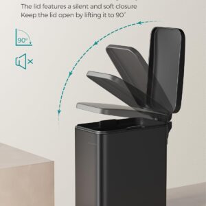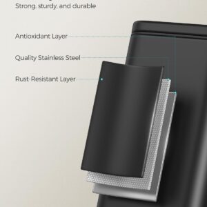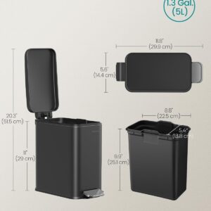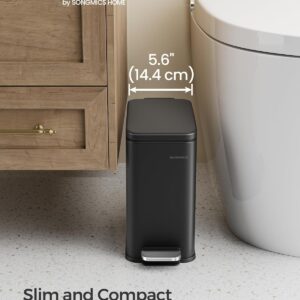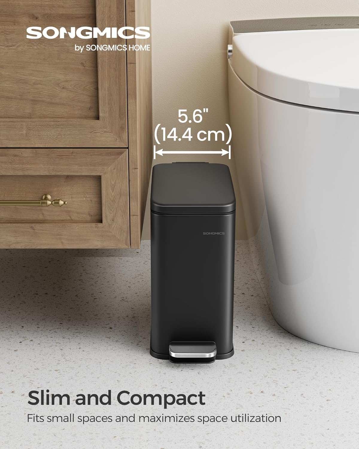 Cosul de gunoi SONGMICS de 5 L este o solutie practica si compacta pentru baie sau alte spatii mici. Designul subtire permite amplasarea usoara langa toaleta sau mobilier, iar mecanismul cu pedala permite deschiderea fara atingere. Capacitatea de 5 L este ideala pentru utilizare zilnica, iar galeata interioara detasabila faciliteaza golirea si curatarea.