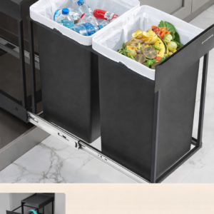 Sistemul de colectare selectiva SONGMICS este solutia ideala pentru o bucatarie organizata. Se monteaza in interiorul dulapului si mentine gunoiul ascuns, reducand mirosurile neplacute. Cele 2 compartimente de 15 L permit sortarea usoara a deseurilor, iar cadrul metalic extensibil asigura glisare lina si stabilitate.