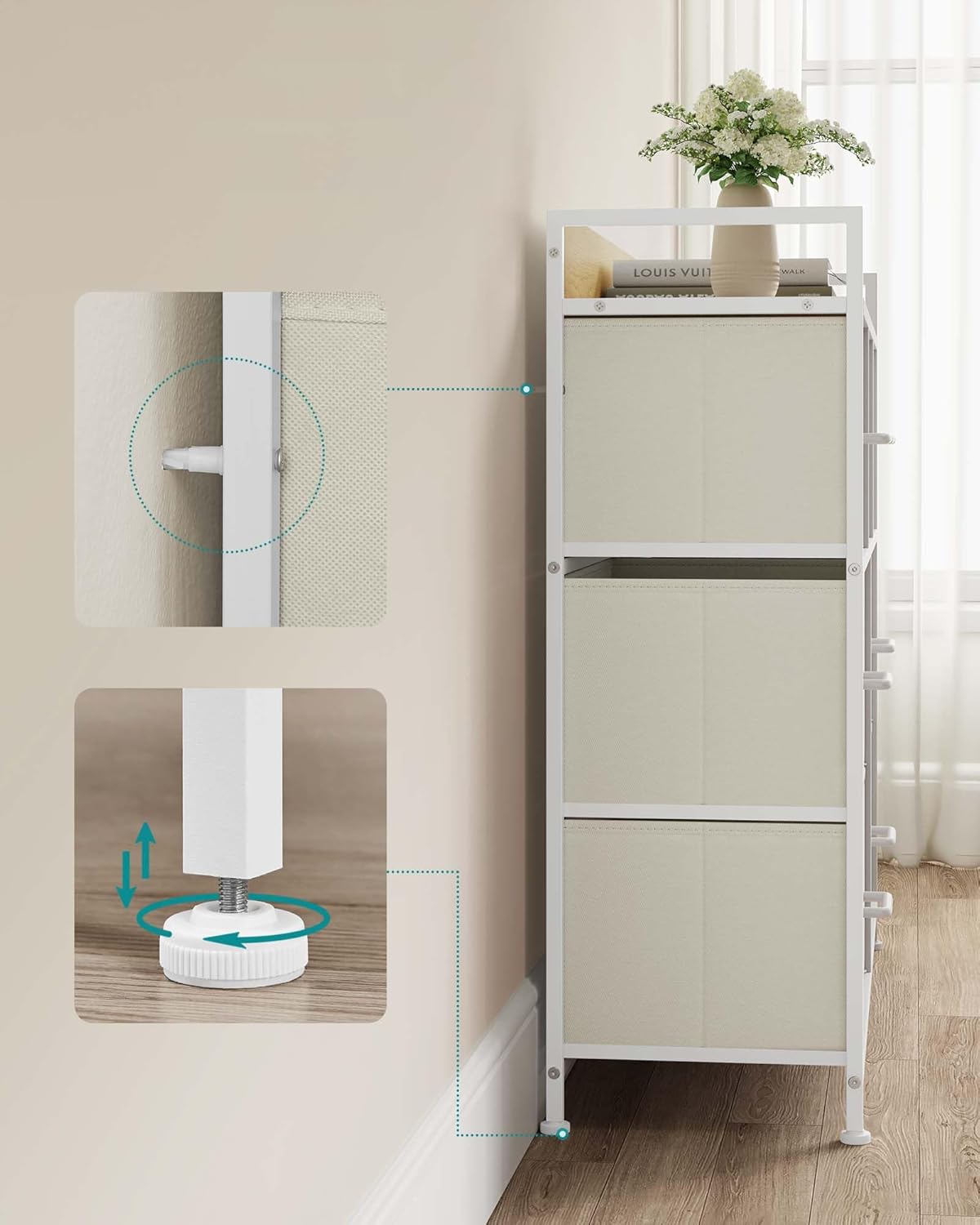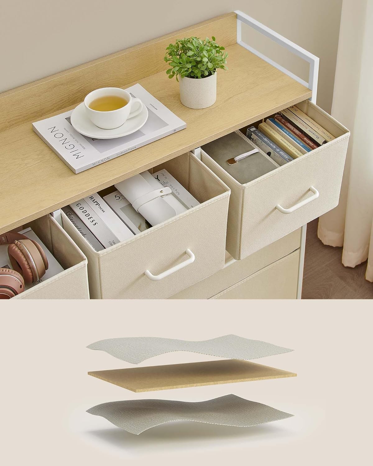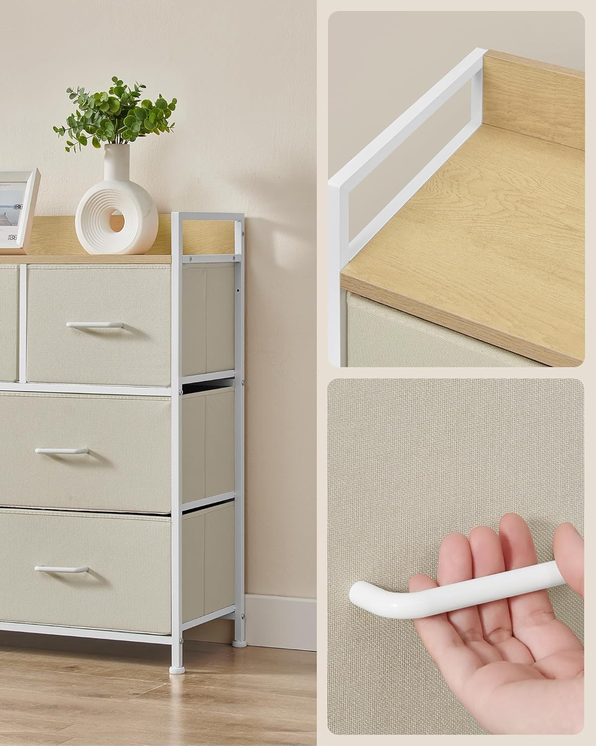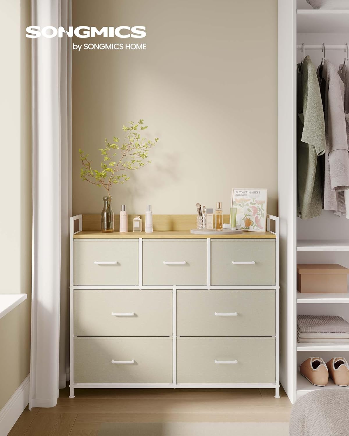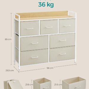Comoda SONGMICS cu 7 sertare textile ofera o solutie practica pentru organizarea eficienta a hainelor si accesoriilor. Structura metalica stabila si blatul din PAL permit utilizarea in dormitor, living sau dressing. Sertarele textile sunt usoare si ideale pentru depozitare zilnica, iar designul industrial se integreaza usor in interioare moderne.