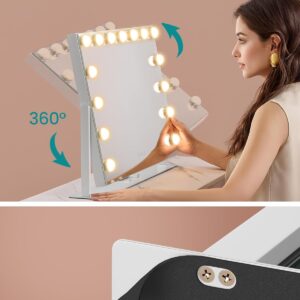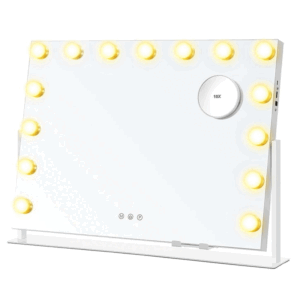 Oglinda de machiaj cu iluminare LED este conceputa pentru un machiaj precis si confortabil. Ofera lumina reglabila in trei tonuri, control tactil discret si functionalitati practice precum suport pentru telefon si porturi de incarcare. Designul stabil si finisajul alb mat o fac potrivita pentru orice masa de toaleta sau dressing.