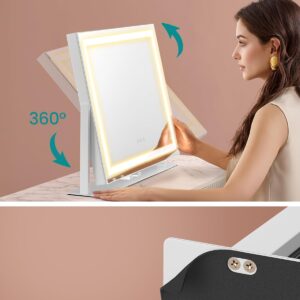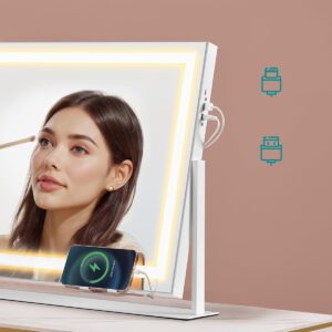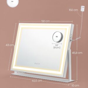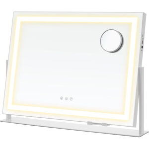 Oglinda de machiaj cu iluminare LED este ideala pentru rutina zilnica de infrumusetare. Ofera 3 tipuri de lumina si reglare a intensitatii pentru un machiaj precis, indiferent de momentul zilei. Design modern, stabil, cu baza metalica rezistenta si finisaj alb mat elegant.