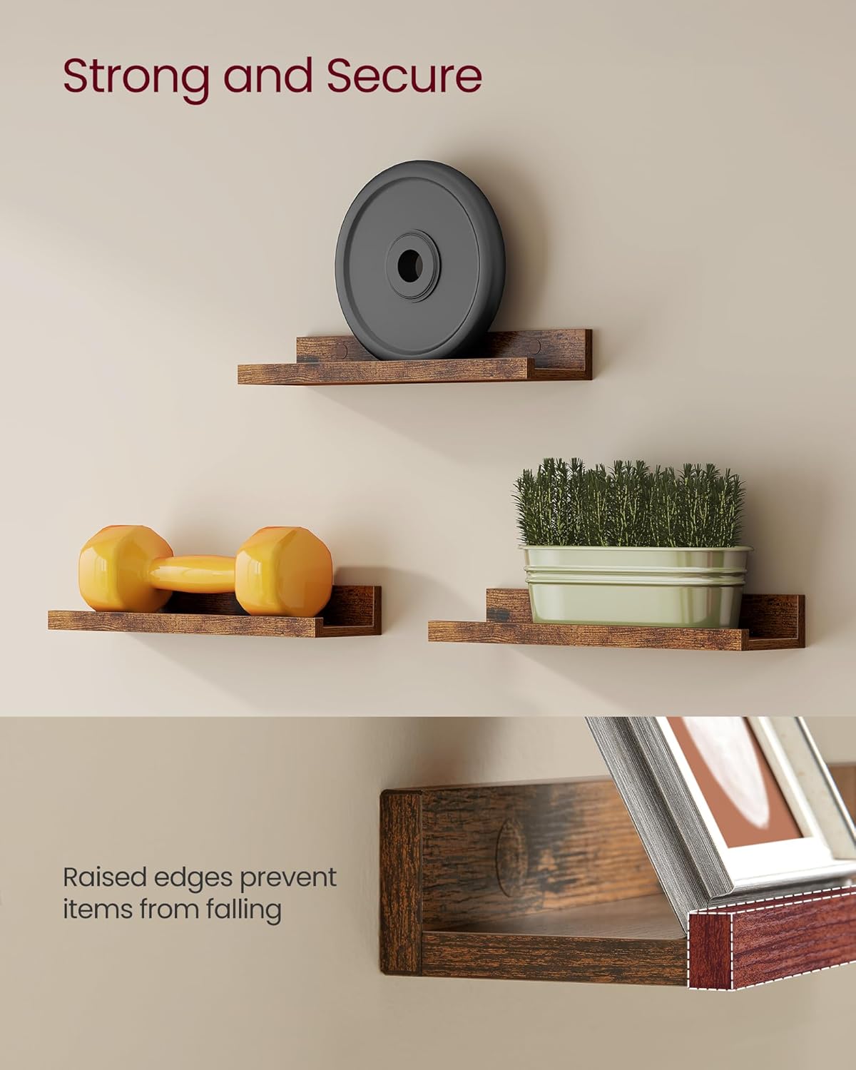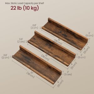 Setul de 3 rafturi VASAGLE este ideal pentru organizarea si decorarea peretilor. Designul suspendat ofera un efect modern, iar marginea frontala inaltata previne alunecarea obiectelor. Potrivite pentru bucatarie, living, dormitor sau birou.