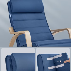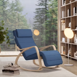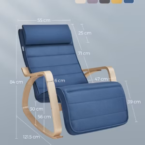 SONGMICS Scaun balansoar din lemn, suport picioare reglabil, maxim 150kg, 122x67x84 cm, albastru inchis