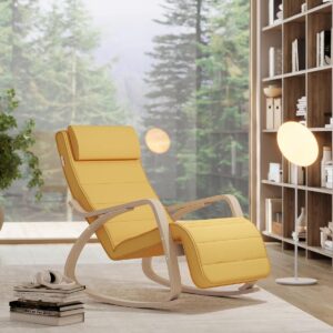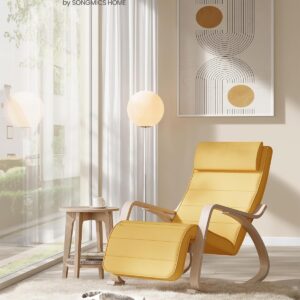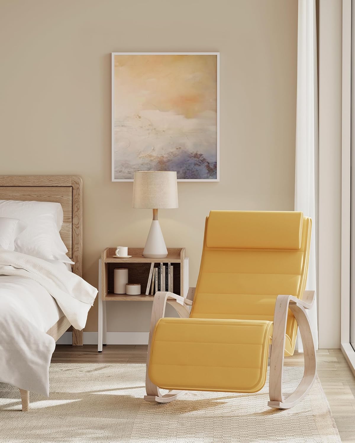Scaunul balansoar SONGMICS este conceput pentru momente de relaxare si confort in dormitor, living sau birou. Structura solida din lemn de mesteacan si metal asigura stabilitate, iar sezutul si tetiera captusite cu spuma ofera sustinere optima. Suportul pentru picioare reglabil in mai multe pozitii permite adaptarea usoara pentru citit, odihna sau relaxare.