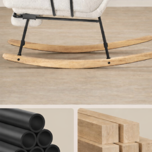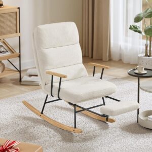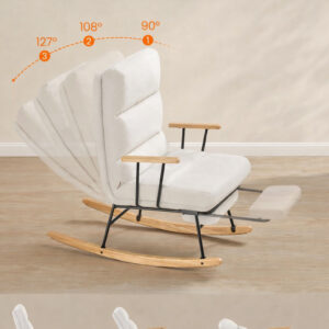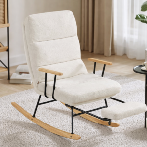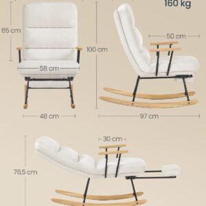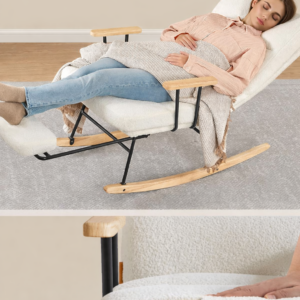SONGMICS HOME Fotoliu balansoar ofera confort si relaxare in orice moment al zilei. Spatarul reglabil in 4 pozitii si suportul de picioare extensibil permit ajustarea pozitiei ideale pentru citit, odihna sau relaxare. Tapiteria moale si designul elegant in nuanta crem se integreaza usor in living sau dormitor.