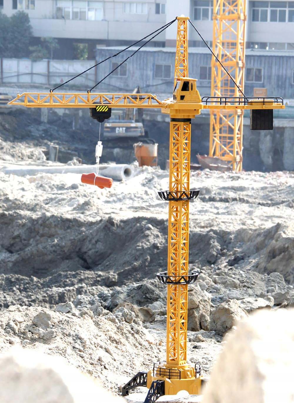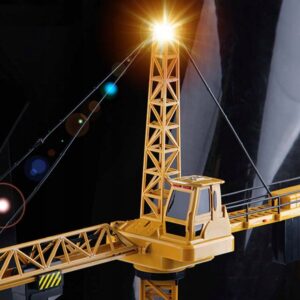 Macara telecomandata de 128 cm reproduce fidel o macara reala, oferind copiilor o experienta captivanta pe santierul de joaca. Cu functii de rotire, ridicare si deplasare a carligului, micutii pot manipula balul de lemn sau containerul inclus in set. Echipata cu lumina LED si sunete autentice, jucaria stimuleaza imaginatia, coordonarea si joaca activa.