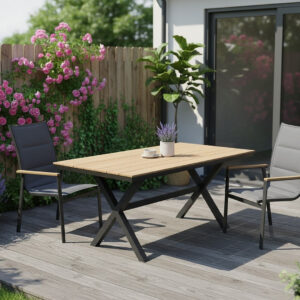 Masa de gradina combina designul modern cu rezistenta excelenta la conditii meteo. Structura din aluminiu si blatul din polywood cu aspect de lemn natural ofera un echilibru perfect intre estetica si durabilitate. Este ideala pentru terasa sau gradina, fiind potrivita atat pentru utilizare zilnica, cat si pentru intalniri cu familia sau prietenii.