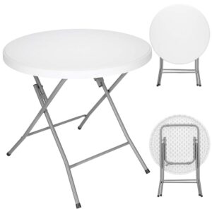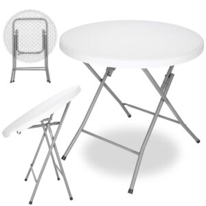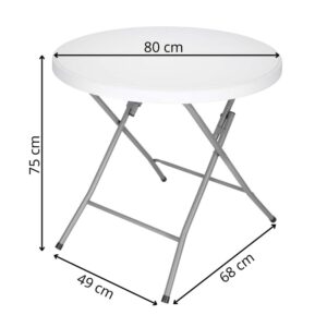 Masa pliabila rotunda pentru gradina sau catering 75×80 cm, HDPE si metal, alb