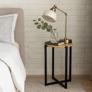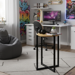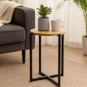 Masuta rotunda cu baza metalica imbina eleganta si functionalitatea, oferind un aspect modern si versatil pentru orice incapere. Dimensiunile compacte o fac ideala pentru dormitor, living sau birou, iar structura metalica asigura durabilitate si stabilitate pe termen lung.