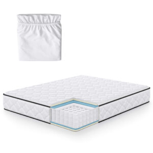 Saltea cu arcuri si husa de protectie, 7 zone confort, duritate H3 medie, inaltime 24 cm, alb, 160×200 cm