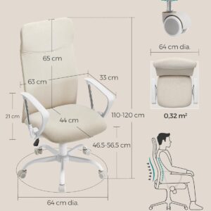 SONGMICS Scaun de birou ergonomic, reglabil pe inaltime, functie balans, maxim 120 kg, 64x64x120 cm, bej