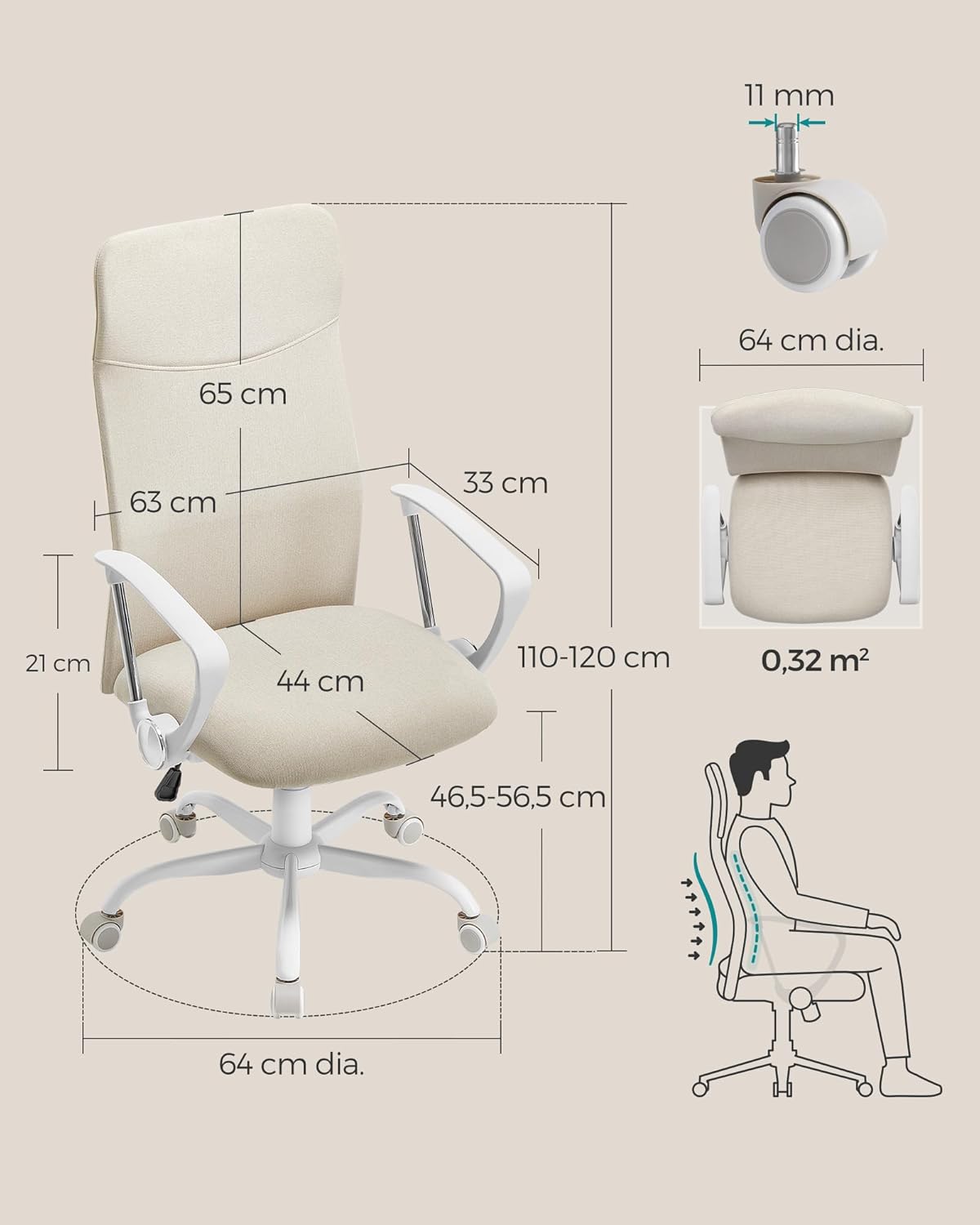 SONGMICS Scaun de birou ergonomic, reglabil pe inaltime, functie balans, maxim 120 kg, 64x64x120 cm, bej SONGMICS Scaun de birou ergonomic, reglabil pe inaltime, functie balans, maxim 120 kg, 64x64x120 cm, bej