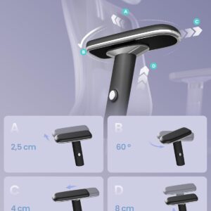 Scaunul ergonomic premium este conceput pentru confort maxim si adaptabilitate completa. Permite reglarea precisa a pozitiei prin tetiera, suport lombar si brate 4D, oferind sustinere optima pentru utilizare indelungata. Ideal pentru birou sau gaming, mentine o postura corecta si reduce oboseala.