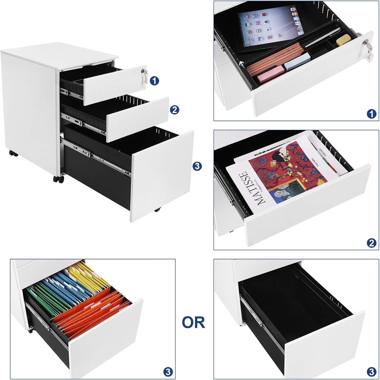 Dulapiorul metalic de birou SONGMICS cu 3 sertare este solutia ideala pentru organizarea documentelor. Cu un design minimalist si modern, este echipat cu sistem de inchidere, organizator de sertar si bara pentru dosare suspendate. Construit din otel rezistent, suporta pana la 20 kg in sertarul inferior.