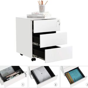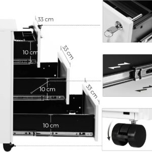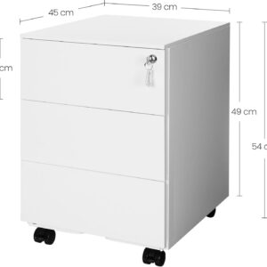Dulapiorul de birou SONGMICS cu 3 sertare este solutia practica pentru organizarea documentelor si accesoriilor de birou. Construit din otel rezistent si livrat cu corp pre-asamblat, ofera mobilitate datorita rotilor si siguranta prin sistemul de inchidere. Designul compact il face potrivit pentru a fi plasat sub birou.