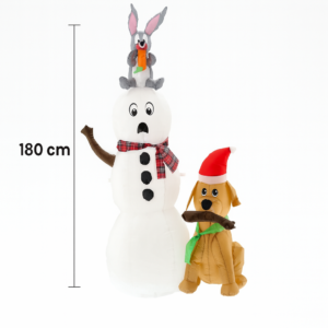 Om de zapada de exterior gonflabil, iluminare LED, cu catel si iepuras, cu compresor integrat, 180x80x60 cm, alb Om de zapada de exterior gonflabil, iluminare LED, cu catel si iepuras, cu compresor integrat, 180x80x60 cm, alb