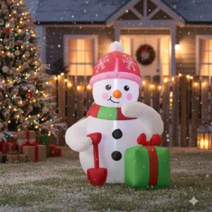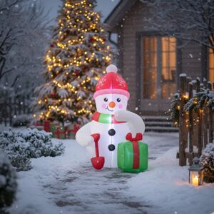 Omul de zapada gonflabil de 180 cm aduce instant atmosfera de sarbatoare datorita iluminarii LED cu efect rotativ si instalarii extrem de rapide. Se umfla automat dupa conectare si este potrivit pentru decorul interior sau exterior.