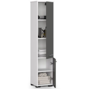 Dulap baie tip coloana cu 2 usi si 5 rafturi, PAL laminat, 30x30x140 cm, alb si gri