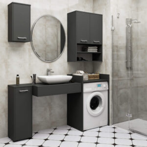 Dulapul suspendat FIN H934 W64 in finisaj grafit gri aduce un aspect modern si elegant baii tale. Realizat din PAL laminat de 16 mm, cu canturi protejate ABS, este rezistent si potrivit pentru utilizare zilnica. Dispune de 2 usi si 4 rafturi interioare pentru organizare eficienta si poate fi montat deasupra masinii de spalat sau langa un corp inferior.