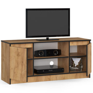 Comoda TV cu 2 usi si o polita, PAL laminat 16 mm, 120x40x55 cm, stejar craft