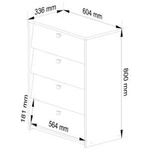 Pantofar compact de 60 cm, ideal pentru holuri inguste sau spatii limitate. Cele 4 usi rabatabile ascund rafturi incapatoare, oferind organizare eficienta pentru pana la 12 perechi de incaltaminte. Realizat din pal laminat de 16 mm, rezistent la uzura, cu margini protejate prin cant ABS.