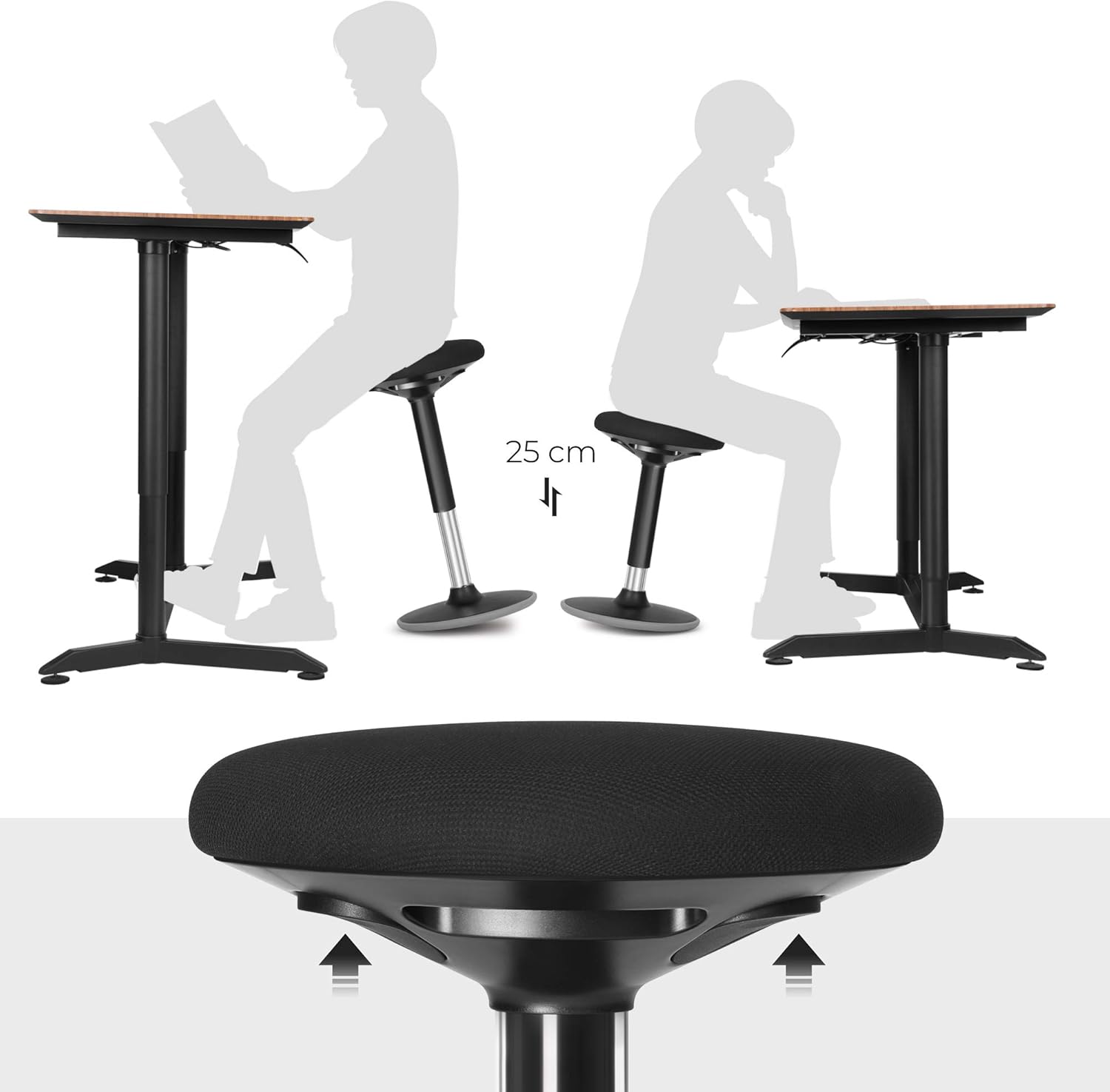 Taburetul ergonomic pentru birou este ideal pentru un stil de lucru activ si flexibil. Permite miscare in toate directiile si incurajeaza o pozitie dinamica, reducand disconfortul in timpul lucrului. Designul compact il face potrivit pentru birouri moderne sau spatii de lucru acasa.