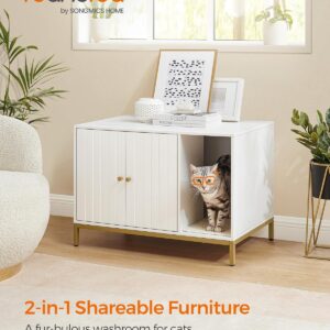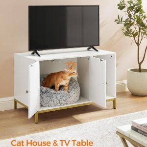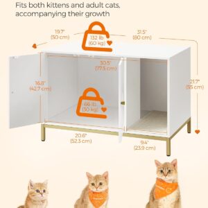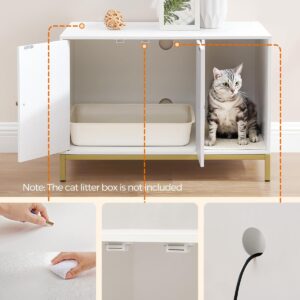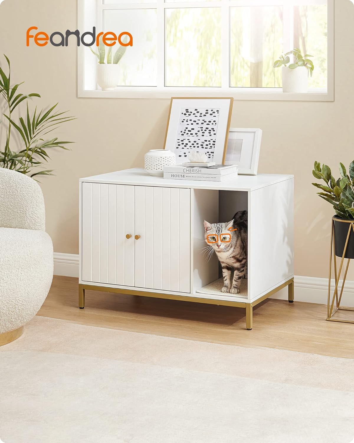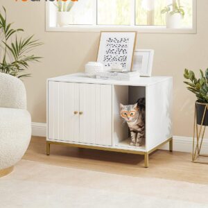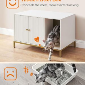FEANDREA Dulap mascat pentru litiera pisici, cu cadru metalic auriu, 80x50x55 cm, alb