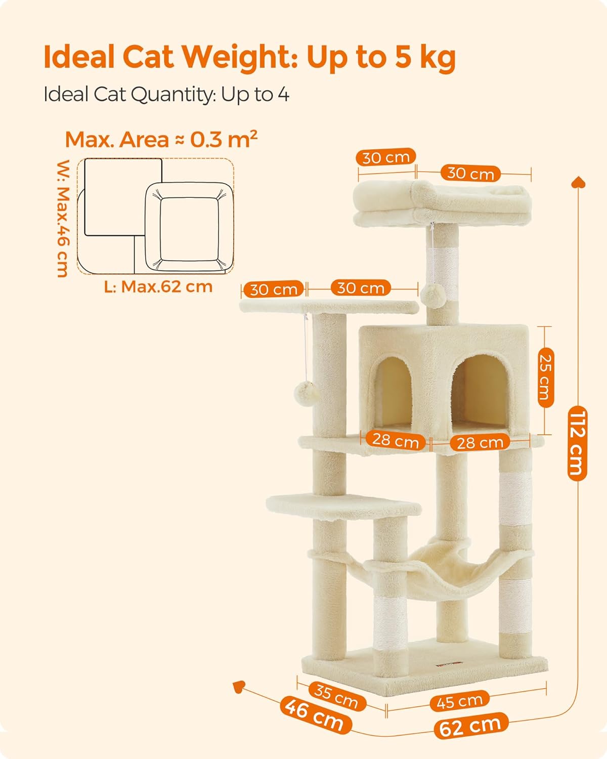 Ansamblul pentru pisici este ideal pentru joaca, odihna si relaxare. Designul pe mai multe niveluri ofera acces usor chiar si pentru pisici mai in varsta, iar materialele moi si placute creeaza un spatiu confortabil. Include mai multe zone de relaxare si elemente interactive pentru distractie zilnica.