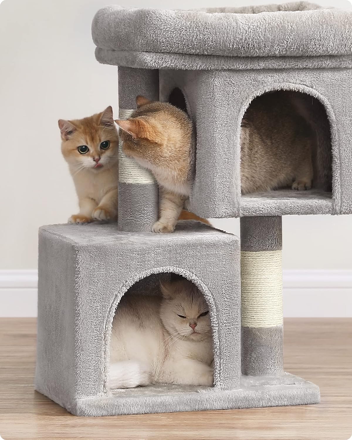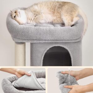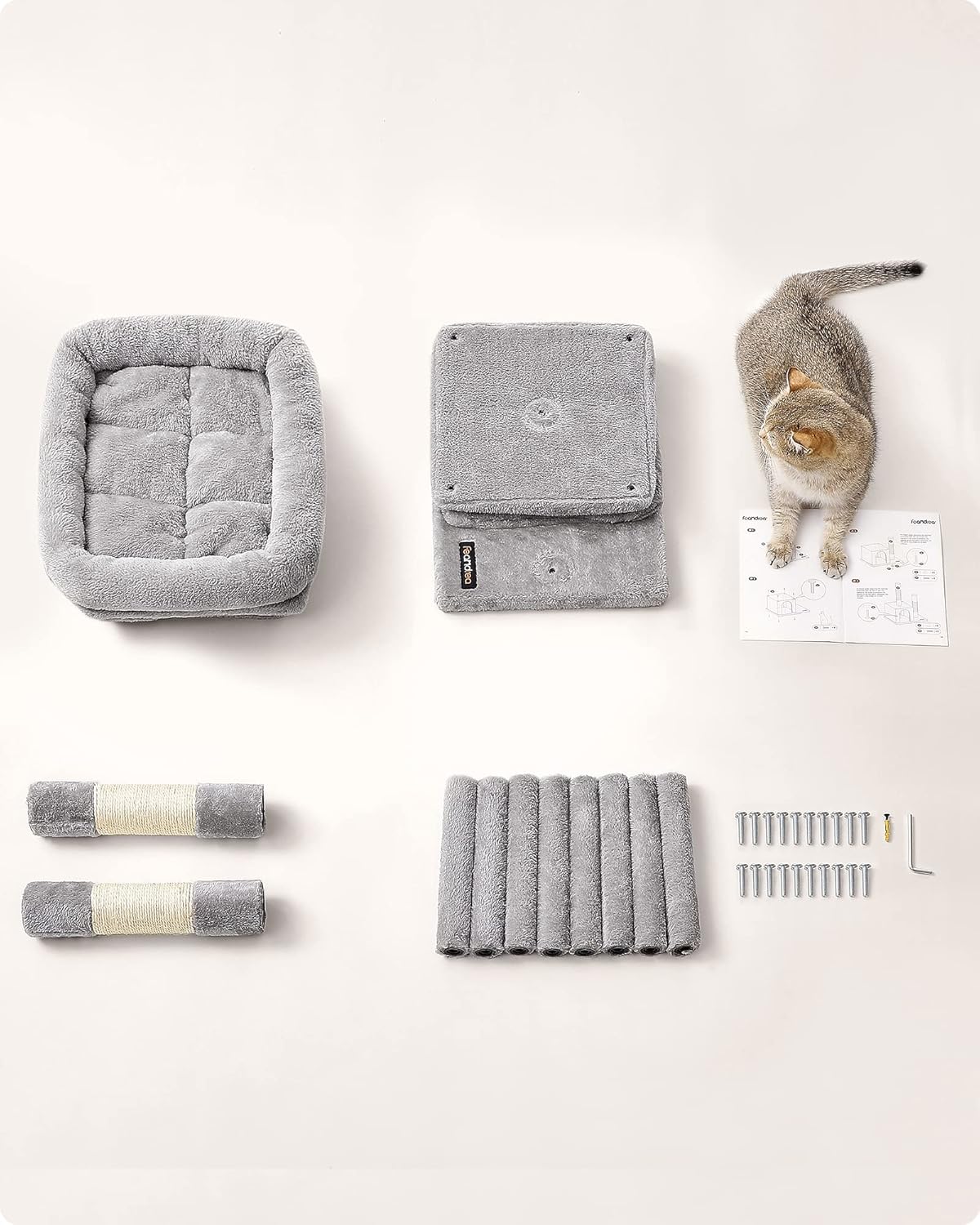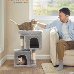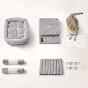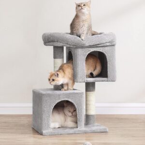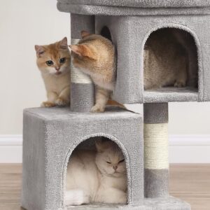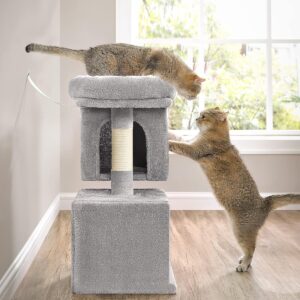 FEANDREA Ansamblu joaca pisici cu platforma si 2 casute, stalpi sisal, 40x30x67 cm, gri deschis