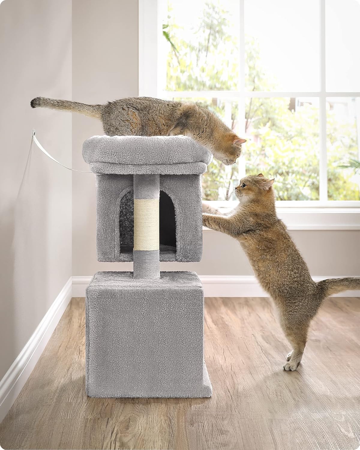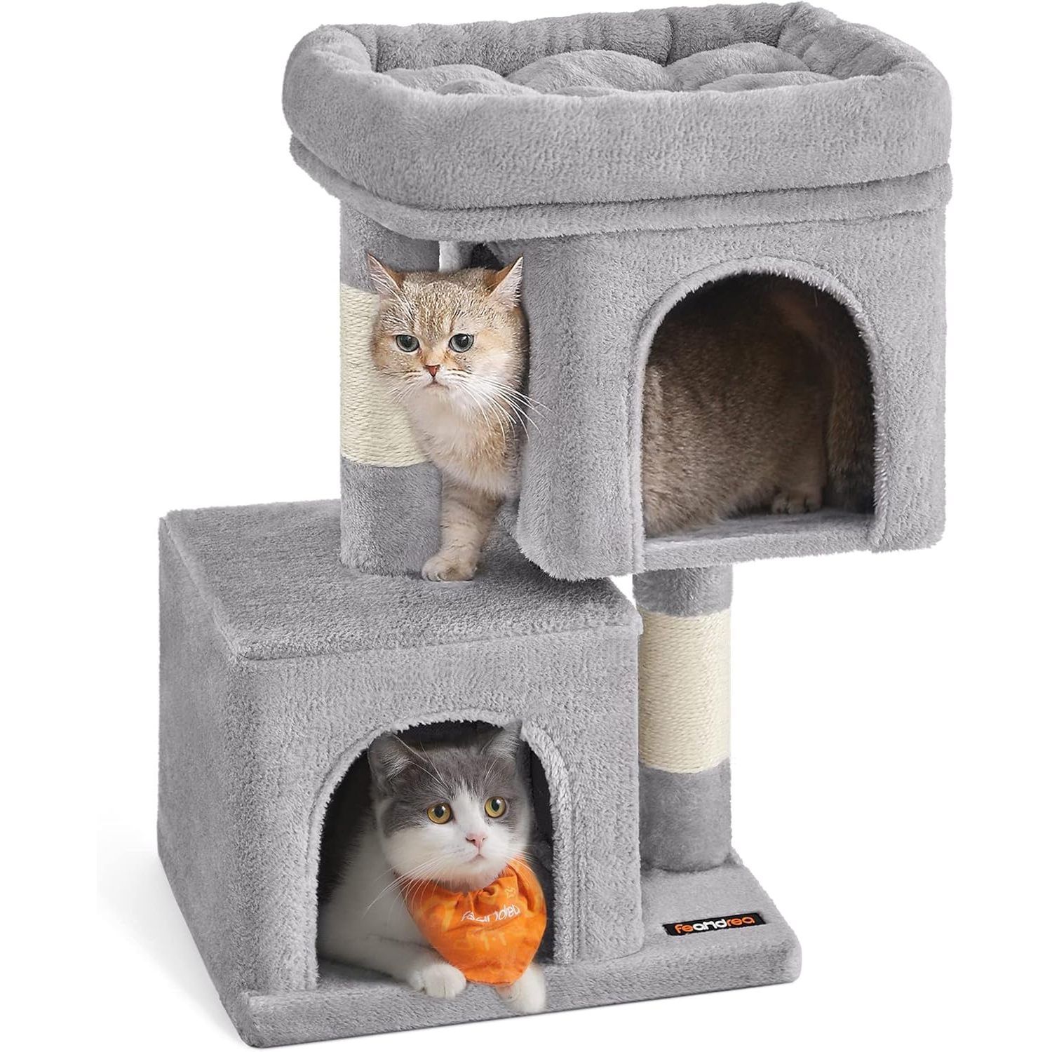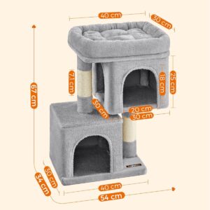 FEANDREA Ansamblu joaca pisici cu platforma si 2 casute, stalpi sisal, 40x30x67 cm, gri deschis FEANDREA Ansamblu joaca pisici cu platforma si 2 casute, stalpi sisal, 40x30x67 cm, gri deschis