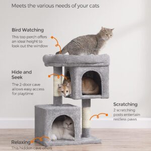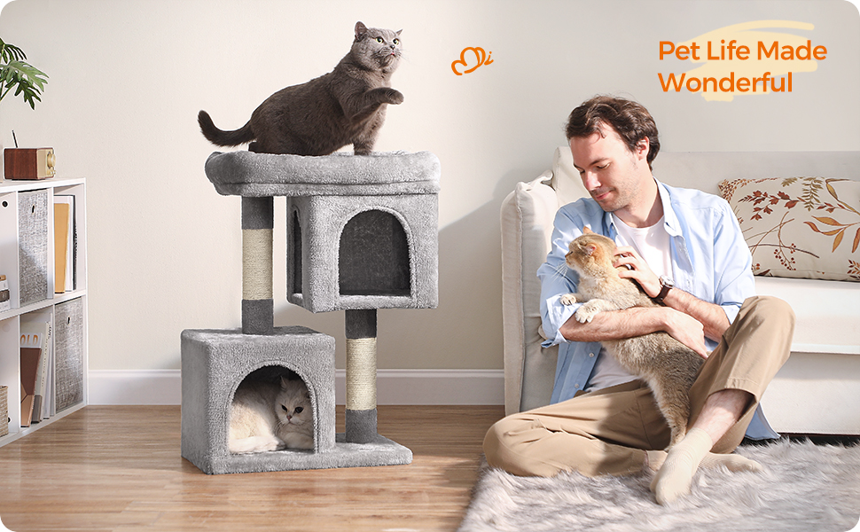 Ofera pisicii tale un spatiu complet pentru joaca si relaxare. Cu platforma superioara, doua casute confortabile si stalpi pentru zgariat, acest ansamblu este ideal pentru activitate zilnica si odihna.