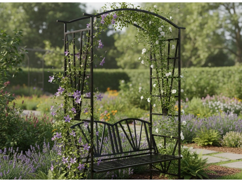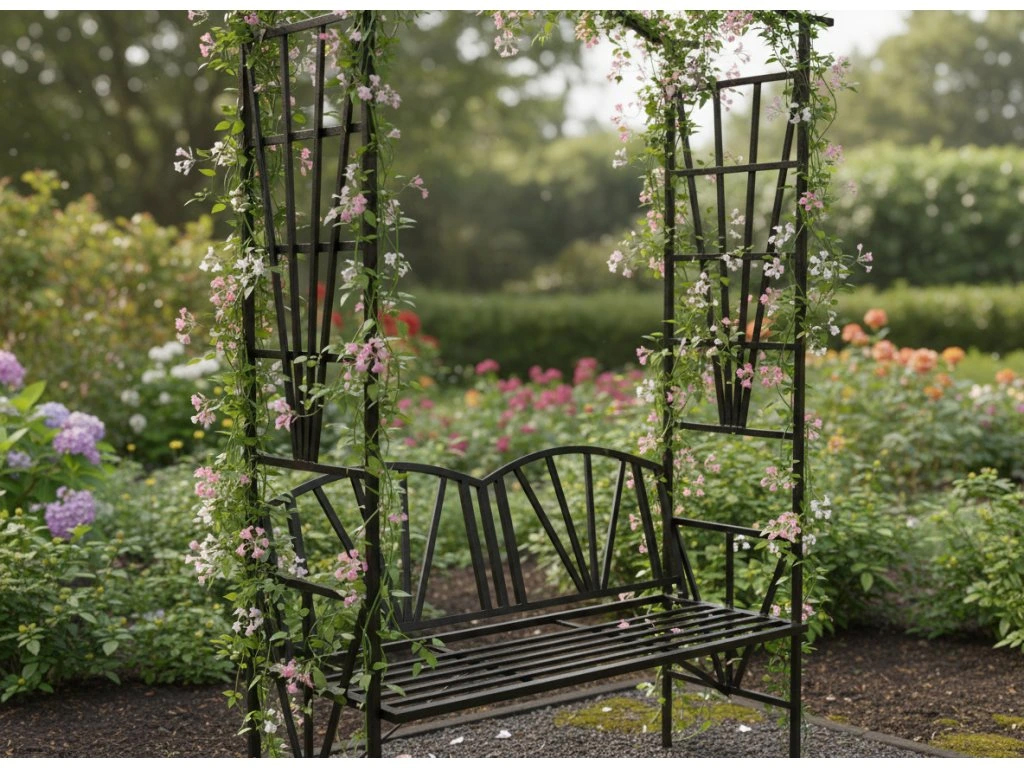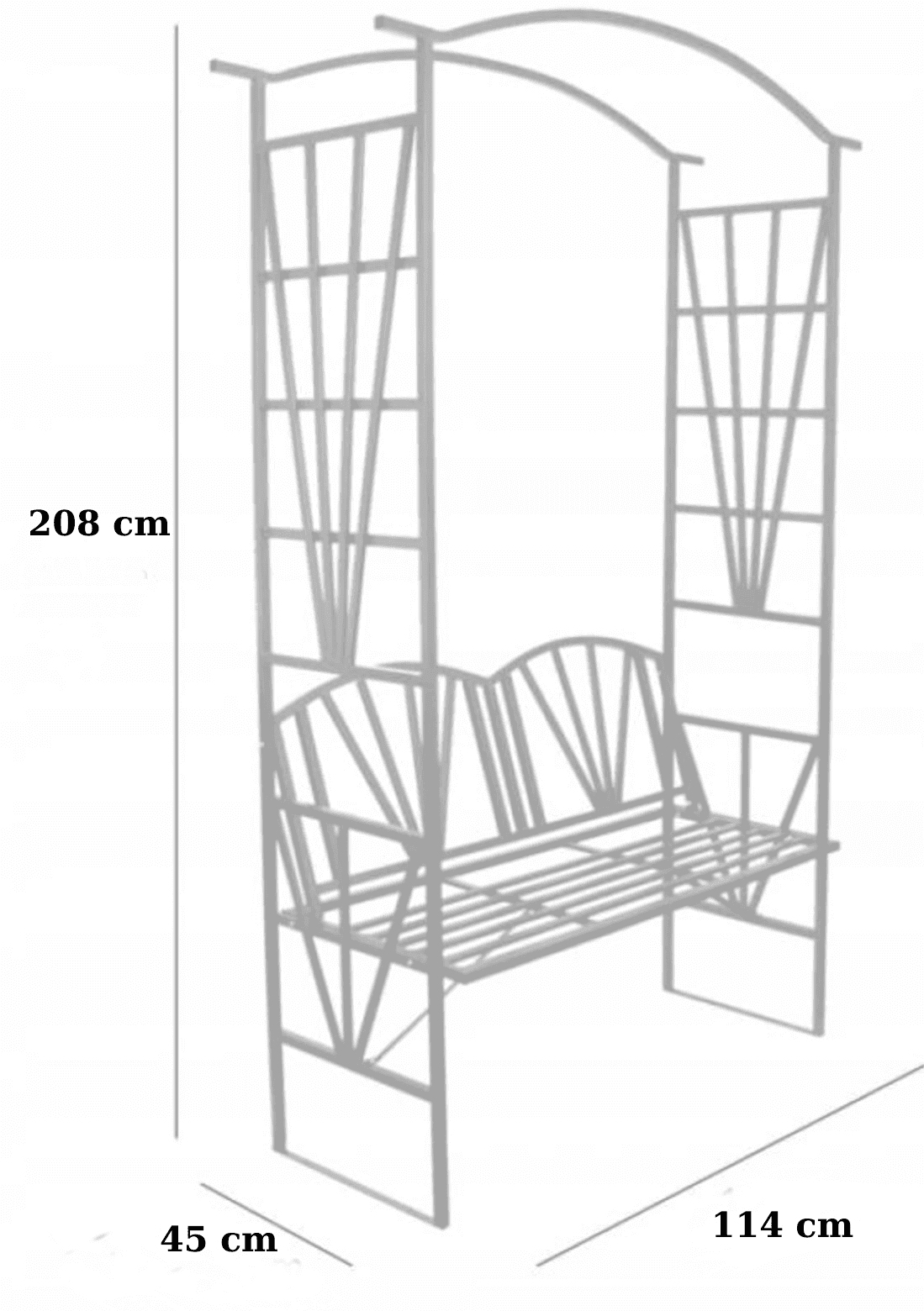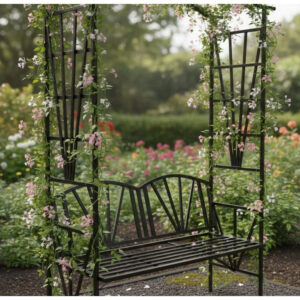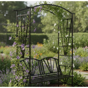 Creeaza un colt de relaxare elegant chiar in gradina ta cu aceasta pergola cu banca integrata. Designul decorativ si structura metalica rezistenta o transforma intr-o alegere ideala atat pentru sustinerea plantelor cataratoare, cat si pentru momente de odihna in aer liber.