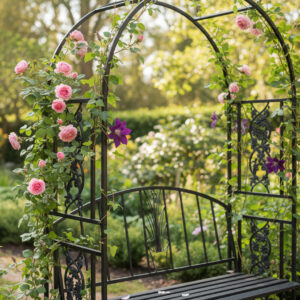 Transforma gradina intr-un colt relaxant si elegant cu aceasta pergola cu banca integrata. Ideala pentru sustinerea plantelor cataratoare si pentru momente de odihna, imbina perfect functionalitatea cu designul decorativ. Structura metalica rezistenta asigura stabilitate si utilizare indelungata in exterior.