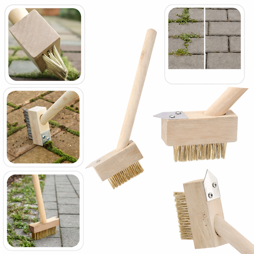 Perie compacta pentru indepartarea buruienilor si curatarea rosturilor dintre pavele sau placi de trotuar. Este prevazuta cu racleta triunghiulara din otel si perie metalica pentru curatarea eficienta a muschiului, ierbii si murdariei. Manerul din lemn asigura o utilizare confortabila si control precis in zonele greu accesibile.