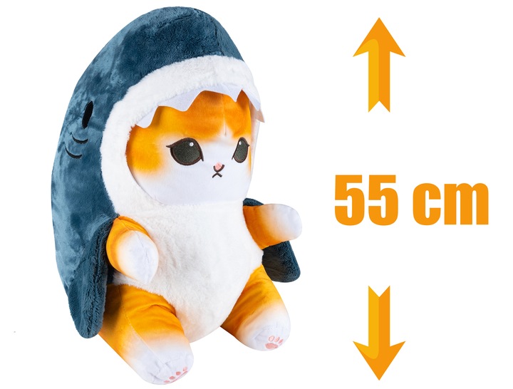 Perna plusata in forma de pisica-rechin este o jucarie decorativa si confortabila pentru camera copiilor. Realizata din poliester moale, este perfecta pentru joaca, relaxare sau ca element decorativ adorabil.