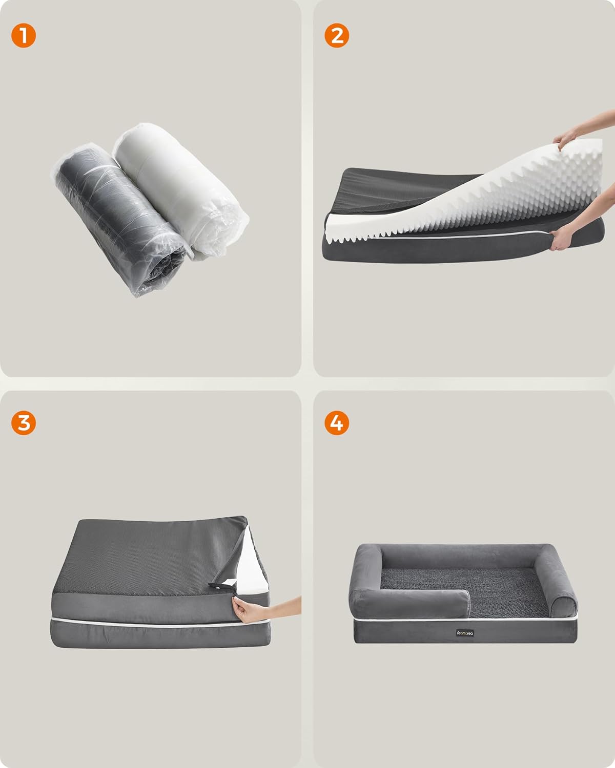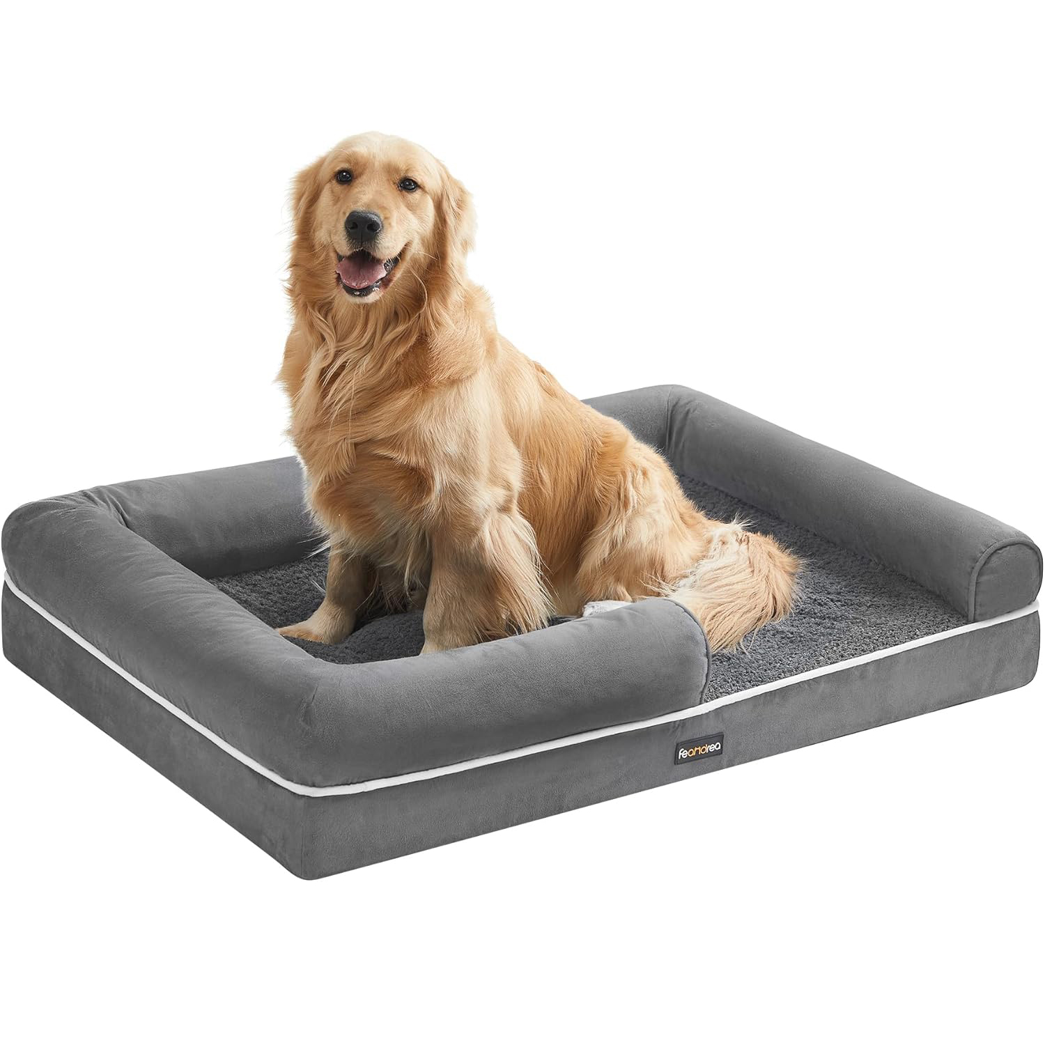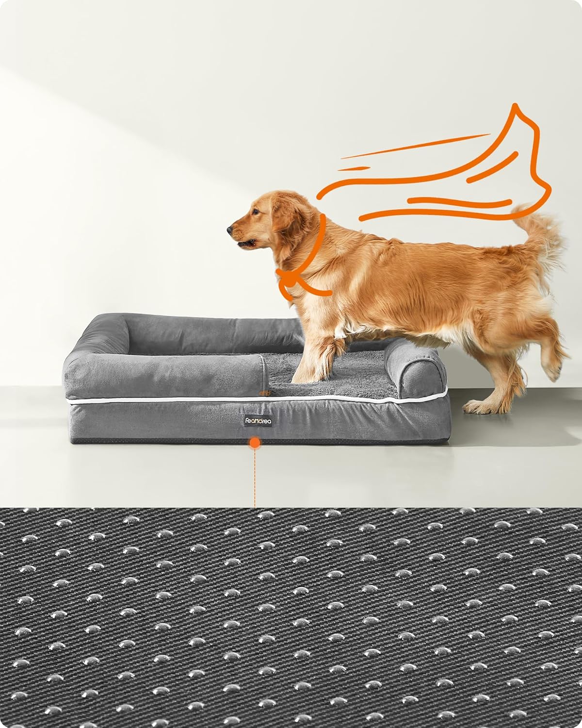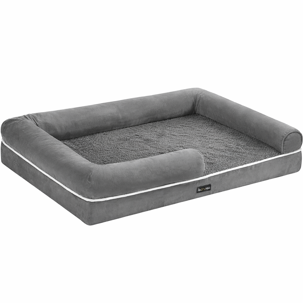 Pat ortopedic pentru caini, conceput pentru confort sporit si sustinere optima in timpul odihnei. Suprafata moale si marginile inaltate creeaza un spatiu sigur si relaxant, potrivit in special pentru caini mai in varsta sau cu nevoi speciale.