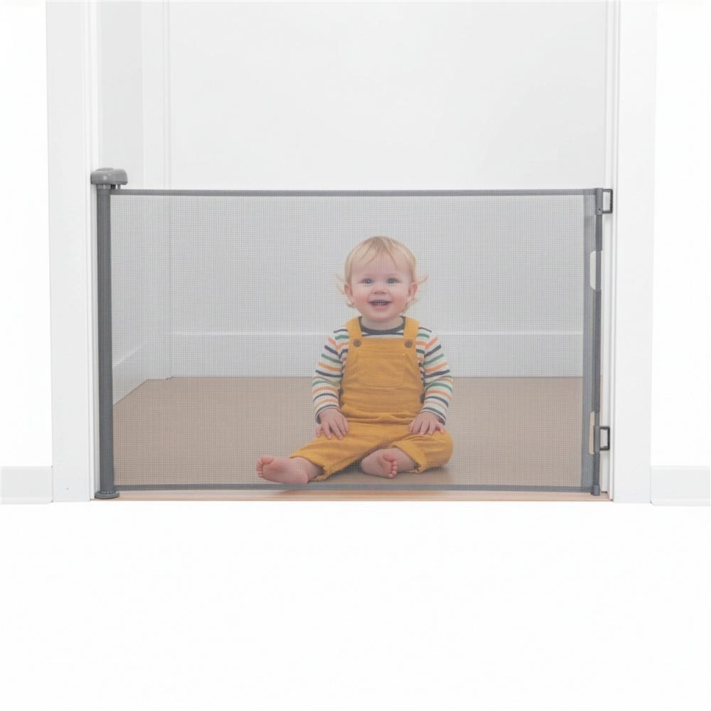 Poarta de siguranta retractabila, conceputa pentru limitarea accesului copiilor sau animalelor de companie. Mecanismul de rulare functioneaza silentios, iar designul compact permite montajul in usi, holuri sau zone de trecere.