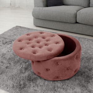 Taburet Alia cu spatiu depozitare, tapitat cu velur, 55×30 cm, roz