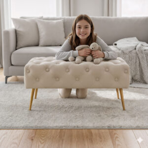Taburetul tapitat Madrid este o piesa eleganta, potrivita pentru interioare cu accente rafinate. Tapiteria din welur are o textura fina si placuta, oferind confort si un aspect sofisticat. Dimensiunile compacte il fac ideal pentru hol, dormitor sau living, atat ca element decorativ, cat si functional.